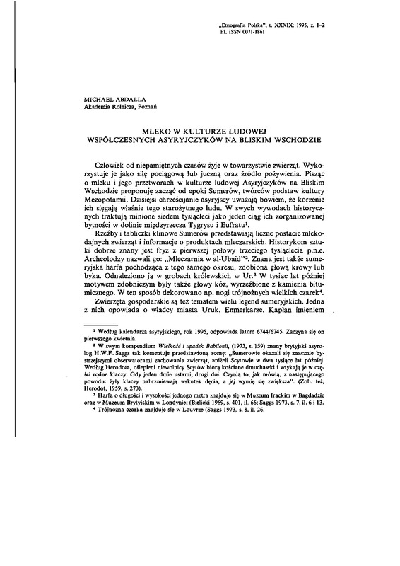 Mleko w kulturze ludowej współczesnych Asyryjczyków na Bliskim Wschodzie / ETNOGRAFIA POLSKA 1995 t.39