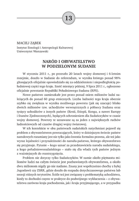 Naród i obywatelstwo w podzielonym Sudanie / Obywatelstwo na progu XXI wieku: konteksty prawne i kulturowe
