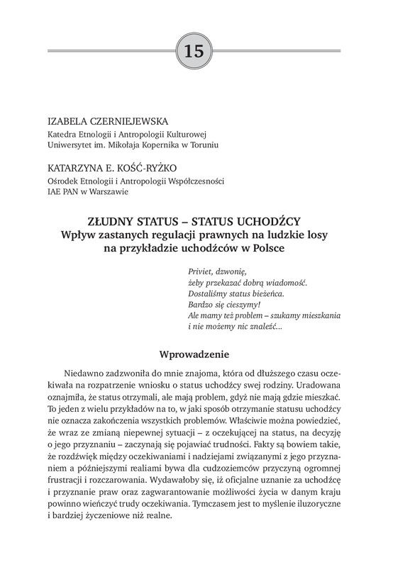 Złudny status - status uchodźcy / Obywatelstwo na progu XXI wieku: konteksty prawne i kulturowe