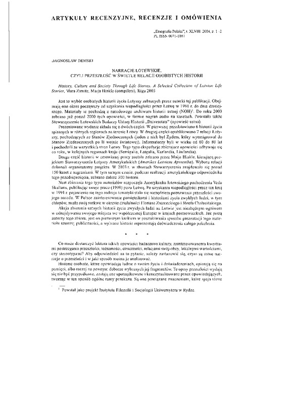 - Artykuły recenzyjne, recenzje i omówienia / ETNOGRAFIA POLSKA 2004 t.48