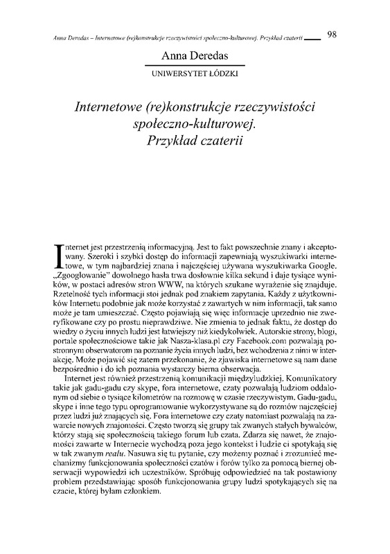 Internetowe (re)konstrukcje rzeczywistości społeczno-kulturowej / Homo interneticus: etnograficzne wędrówki w głąb sieci