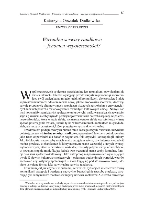 Wirtualne serwisy randkowe - fenomen współczesności? / Homo interneticus: etnograficzne wędrówki w głąb sieci