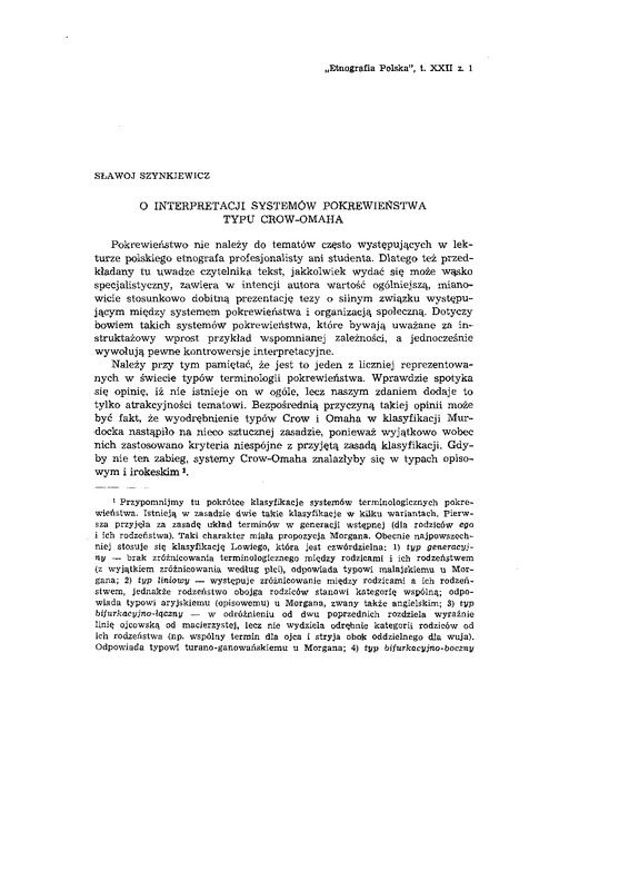 O interpretacji systemów pokrewieństwa typu Crow-Omaha / ETNOGRAFIA POLSKA 1978 t.22 z.1