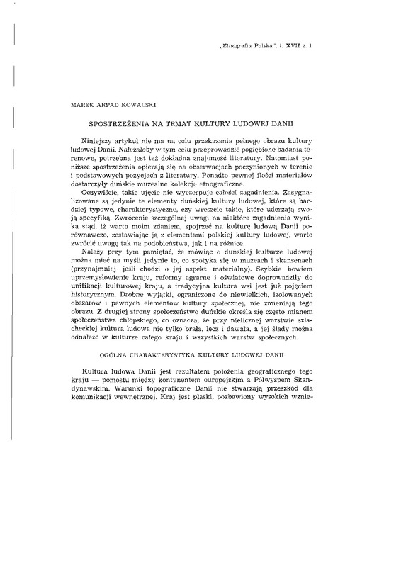 - Spostrzeżenia na temat kultury ludowej Danii / ETNOGRAFIA POLSKA 1973 t.17 z.1