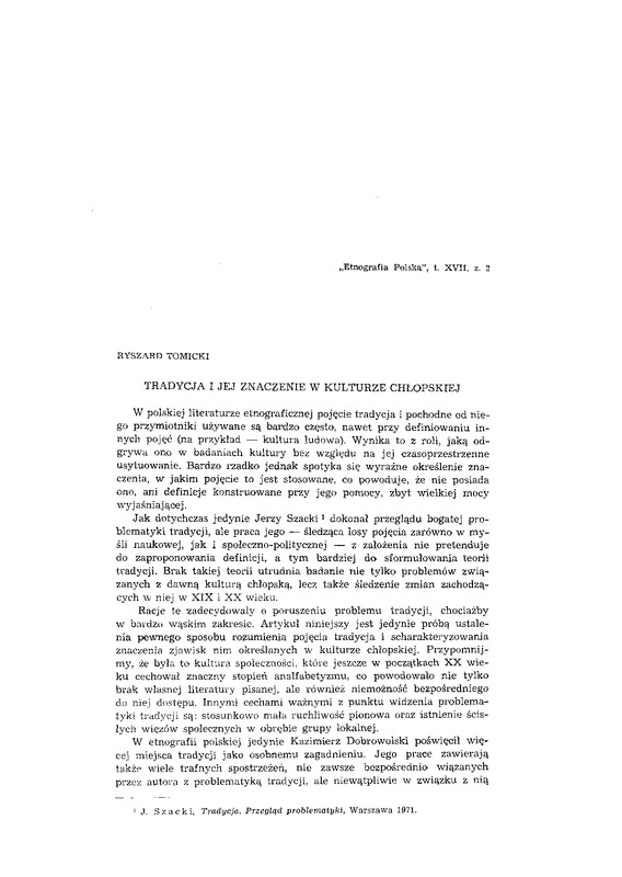 - Tradycja i jej znaczenie w kulturze chłopskiej / ETNOGRAFIA POLSKA 1973 t.17 z.2