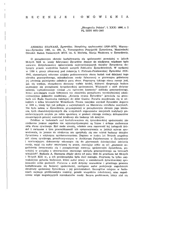 - Recenzje i omówienia / ETNOGRAFIA POLSKA 1986 t.30 z.2