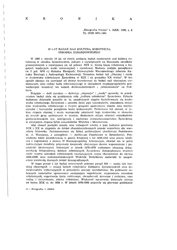 - Kronika / ETNOGRAFIA POLSKA 1986 t.30 z.2