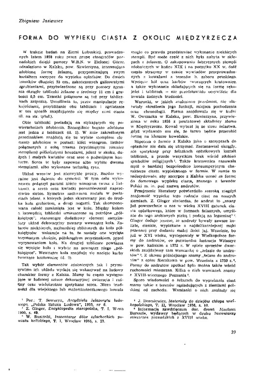 - Forma do wypieku ciasta z okolic Międzyrzecza / Polska Sztuka Ludowa 1960 t.14 z.1