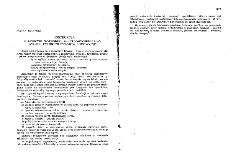 Instrukcja w sprawie materiału ilustracyjnego do Atlasu Polskich Strojów Ludowych / LUD 1954 t.41