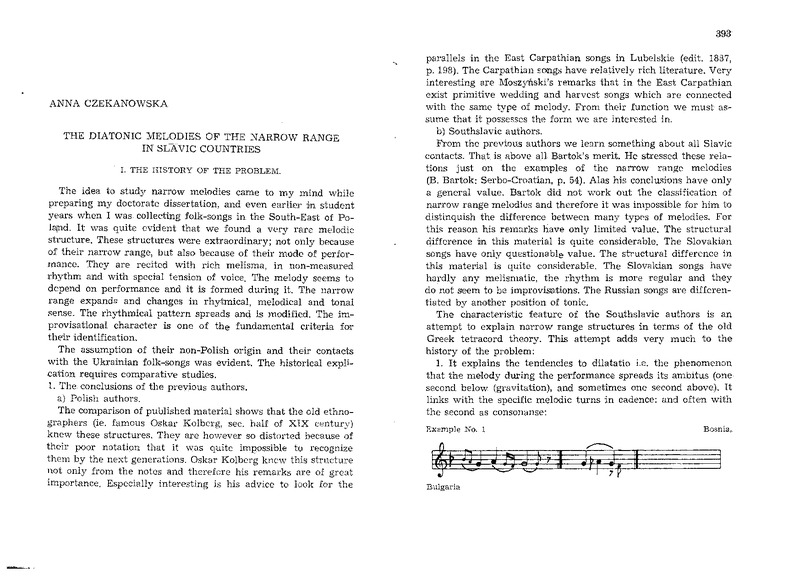 The Diatonic Melodies in the Narrow Range in Slavic Countries / LUD 1964-65 t.50