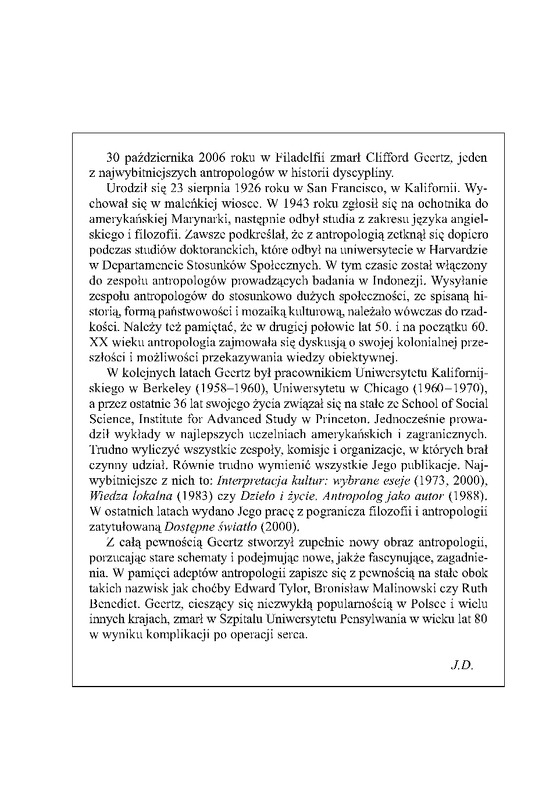 - Clifforf Geertz - in memoriam / ETNOGRAFIA POLSKA 2006 t.50