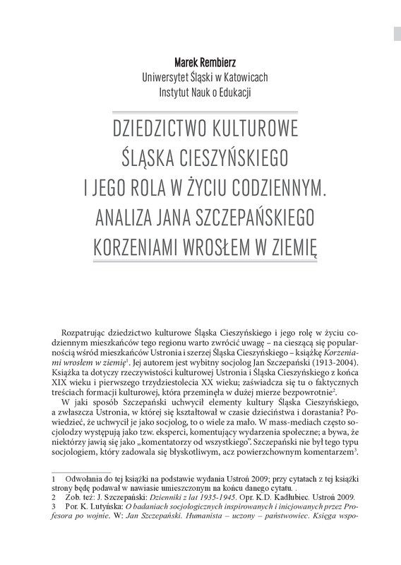 Dziedzictwo kulturowe jako klucz do tożsamości pogranicza polsko-czeskiego; pod red. Haliny Rusek,Agnieszki Pieńczak i Jacka Szczyrbowskiego, s.188-195