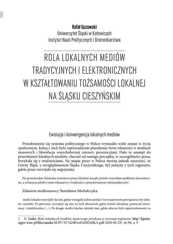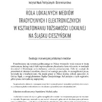 Rola lokalnych mediów tradycyjnych i elektronicznych w kształtowaniu tożsamości lokalnej na Śląsku Cieszyńskim / Dziedzictwo kulturowe jako klucz do tożsamości pogranicza polsko-czeskiego