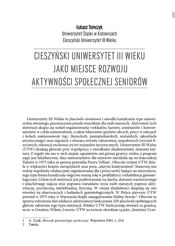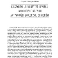 Cieszyński Uniwersytet III Wieku jako miejsce rozwoju aktywności społecznej seniorów / Dziedzictwo kulturowe jako klucz do tożsamości pogranicza polsko-czeskiego