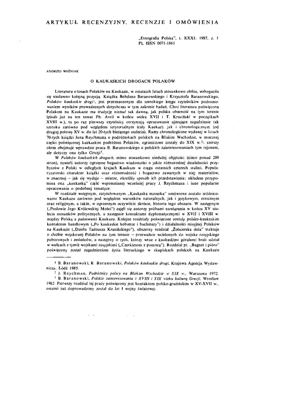 - Artykuły recenzyjne, recenzje i omówienia / ETNOGRAFIA POLSKA 1987 t.31 z.1