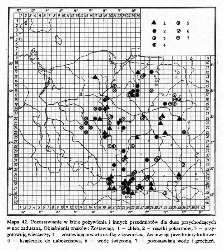 Pozostawienie w izbie pożywienia i innych przedmiotów dla dusz przychodzących w noc zaduszną/ Komentarze do Polskiego Atlasu Etnograficznego (mapy)