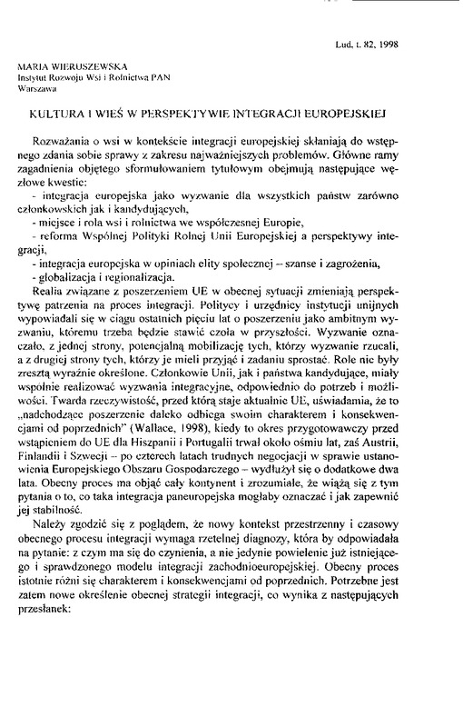 - Kultura i wieś w perspektywie integracji europejskiej / LUD 1998 t.82