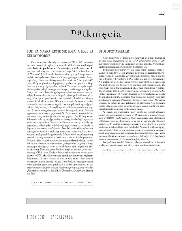 - Barbarzyńca - pismo antropologiczne, 2012 nr 1 (18), s.113
