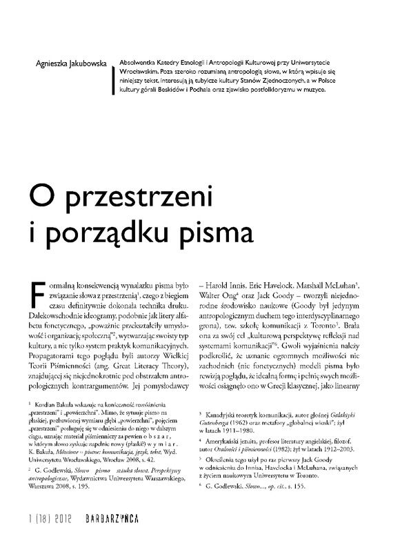 - O przestrzeni i porządku pisma/ Barbarzyńca 2012 nr1(18)
