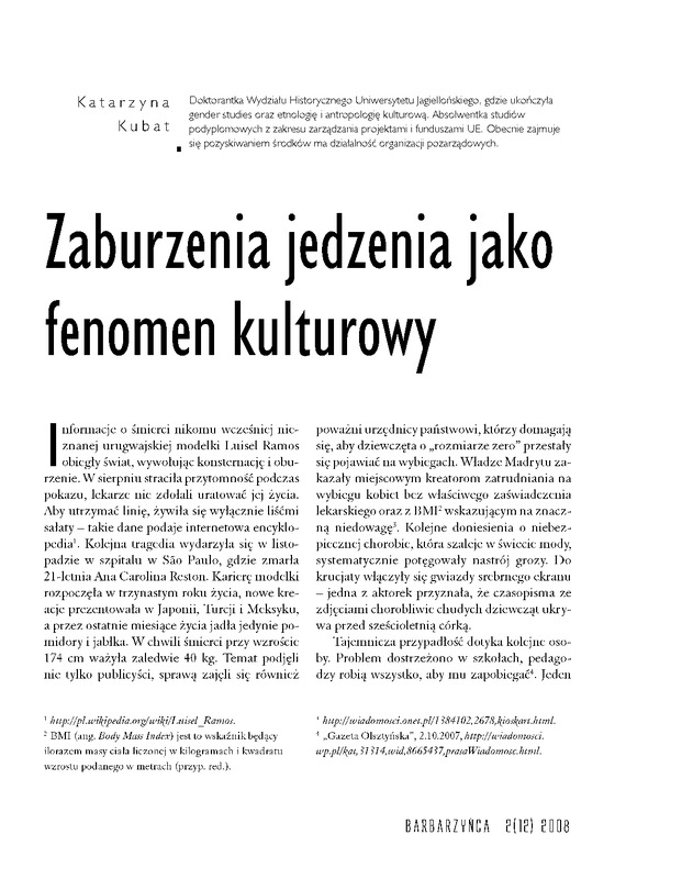 Zaburzenia jedzenia jako fenomen kulturowy / Barbarzyńca 2008 nr 2 (12)