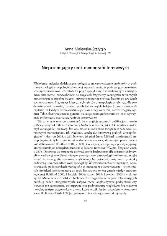 Nieprzemijający urok monografii terenowych / Antropolog wobec współczesności