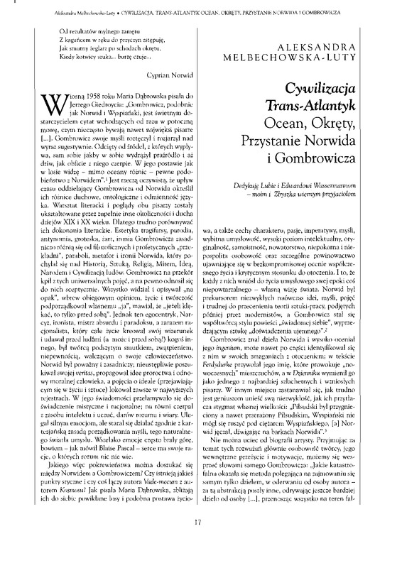 Cywilizacja Transatlantyk. Ocean, Okręty, Przystanie Norwida i Gombrowicza / Polska Sztuka Ludowa - Konteksty 2002 t.56 z.1-2