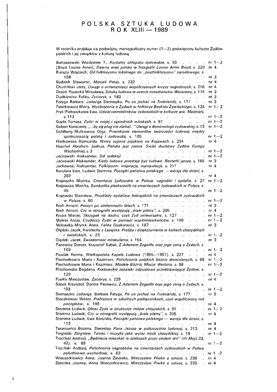 - Spisy treści / Polska Sztuka Ludowa - Konteksty t.44 z.1