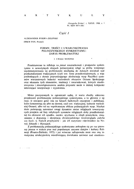 Forma, treść i uwarunkowania polinezyjskiego synkretyzmu. Zarys problematyki / ETNOGRAFIA POLSKA 1988 t.32 z.1