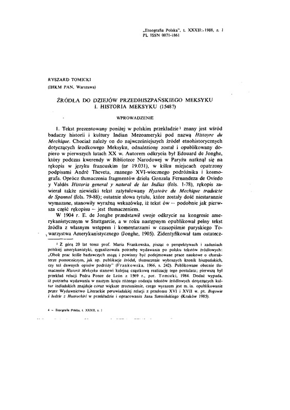 Źródła do dziejów przedhiszpańskiego Meksyku. I Historia Meksyku (1548?) / ETNOGRAFIA POLSKA 1988 t.32 z.1