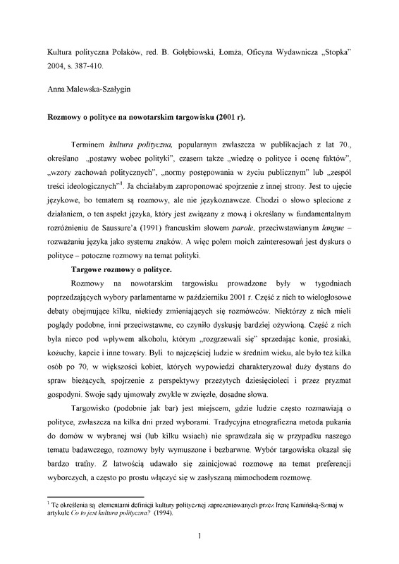 - Rozmowy o polityce na targowisku / Kultura polityczna Polaków