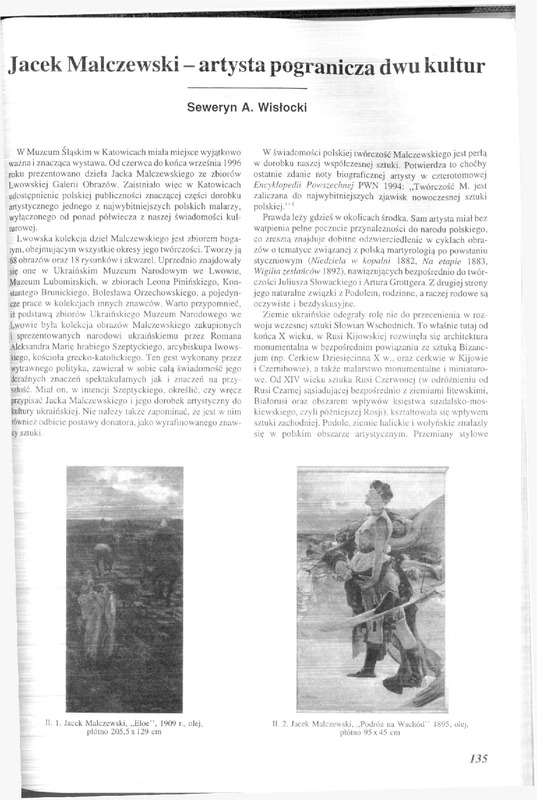 - Jacek Malczewski - artysta pogranicza dwu kultur / Polska Sztuka Ludowa - Konteksty 1996 t.50 z.3-4