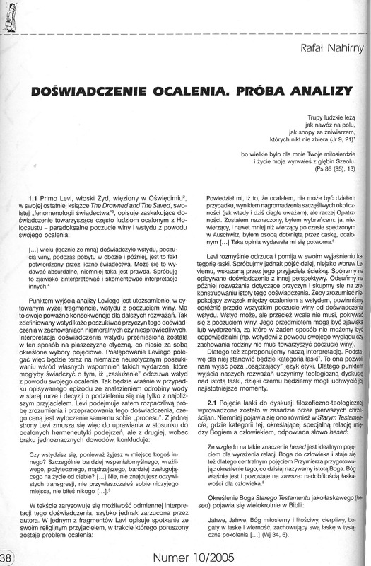 - Doświadczenie ocalenia, próba analizy/ Barbarzyńca 2005 nr 10