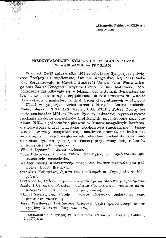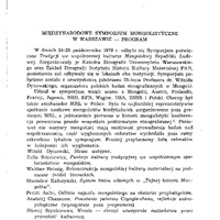 Międzynarodowe Sympozjum Mongolistyczne w Warszawie - program / ETNOGRAFIA POLSKA 1980 t.24 z.1