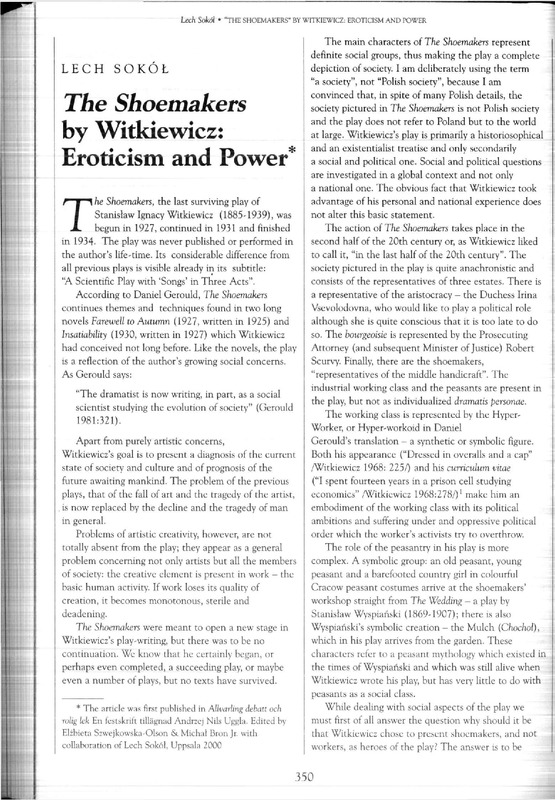 The Shoemakers by Witkiewicz: Eroticism and Power="Szewcy" Witkacego: erotyzm i władza / Polska Sztuka Ludowa - Konteksty 2000 t.54 z.1-4