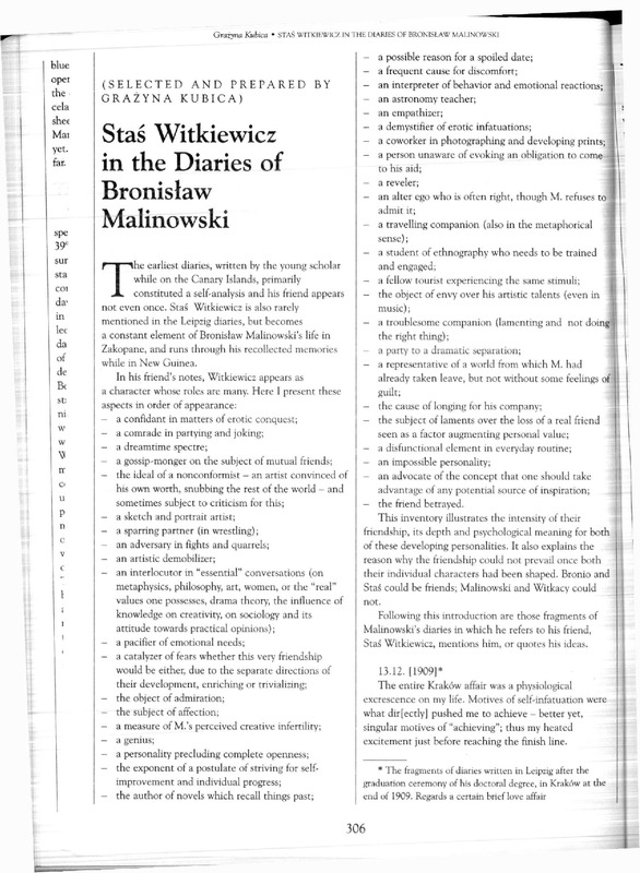 Staś Witkiewicz in the Diaries of Bronisław Malinowski=Staś Witkiewicz w Dziennikach Bronisława Malinowskiego / Polska Sztuka Ludowa - Konteksty 2000 t.54 z.1-4
