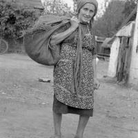 Kobieta niosącą płachtę ze słomą/ Kolekcja fotografii Zygmunta Kłodnickiego - Kowalewo (ok.Kościana, woj.wielkopolskie)
