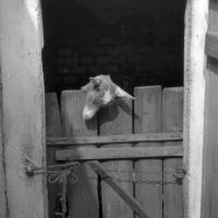 Cielak wyglądający przez drzwi wejściowe do budynku gospodarczego / Kolekcja fotografii Zygmunta Kłodnickiego - Jeleniów (woj. dolnośląskie)