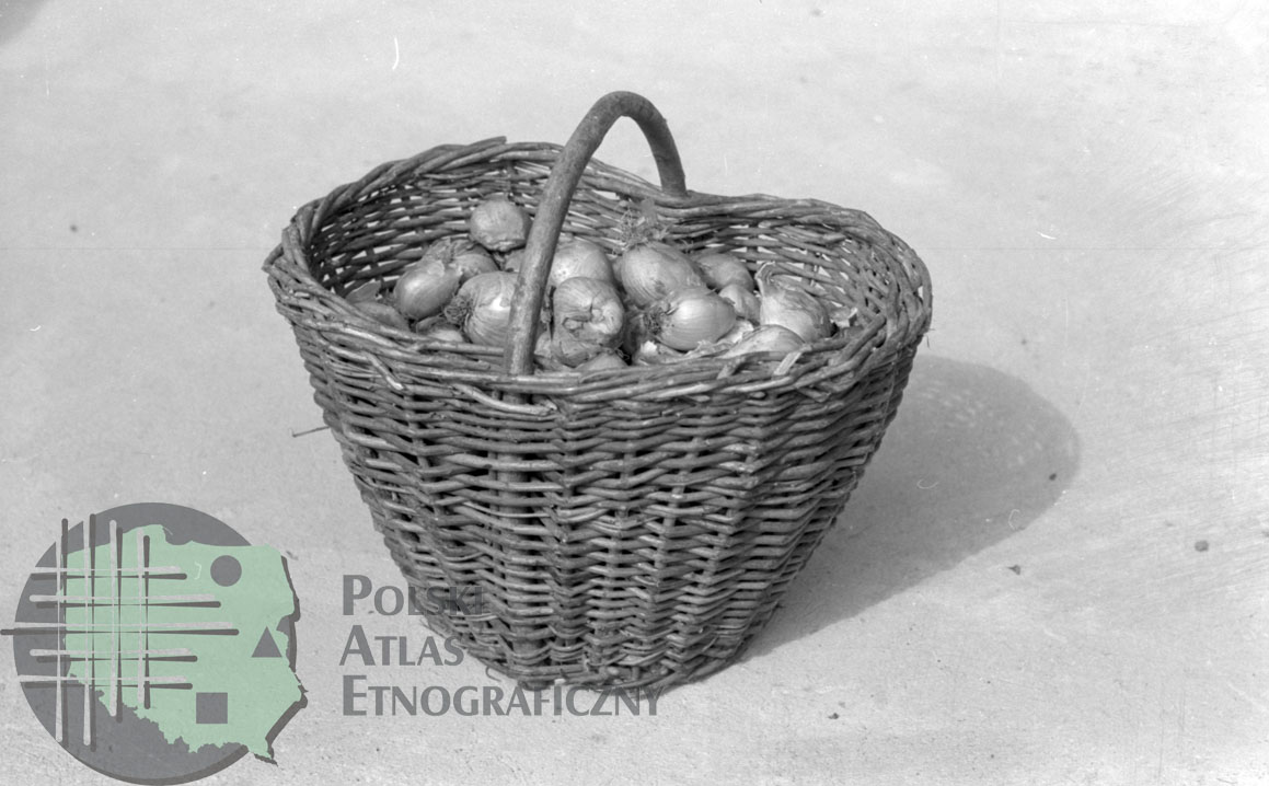 Kosz wiklinowy wypełniony cebulkami / Kolekcja fotografii Zygmunta Kłodnickiego - Wilczyna (woj. wielkopolskie)