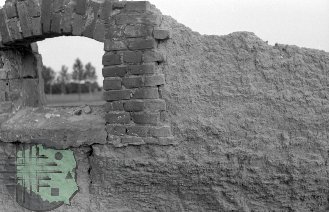 Fragment ściany glinianej z oknem obramowanym cegłami / Kolekcja fotografii Zygmunta Kłodnickiego - Jaraczewo (woj. wielkopolskie)