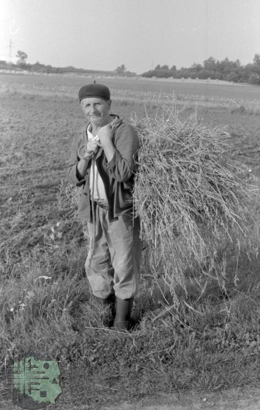 Mężczyzna transportujący siano na plecach / Kolekcja fotografii Zygmunta Kłodnickiego - Łęg (woj. kujawsko-pomorskie)