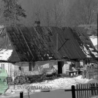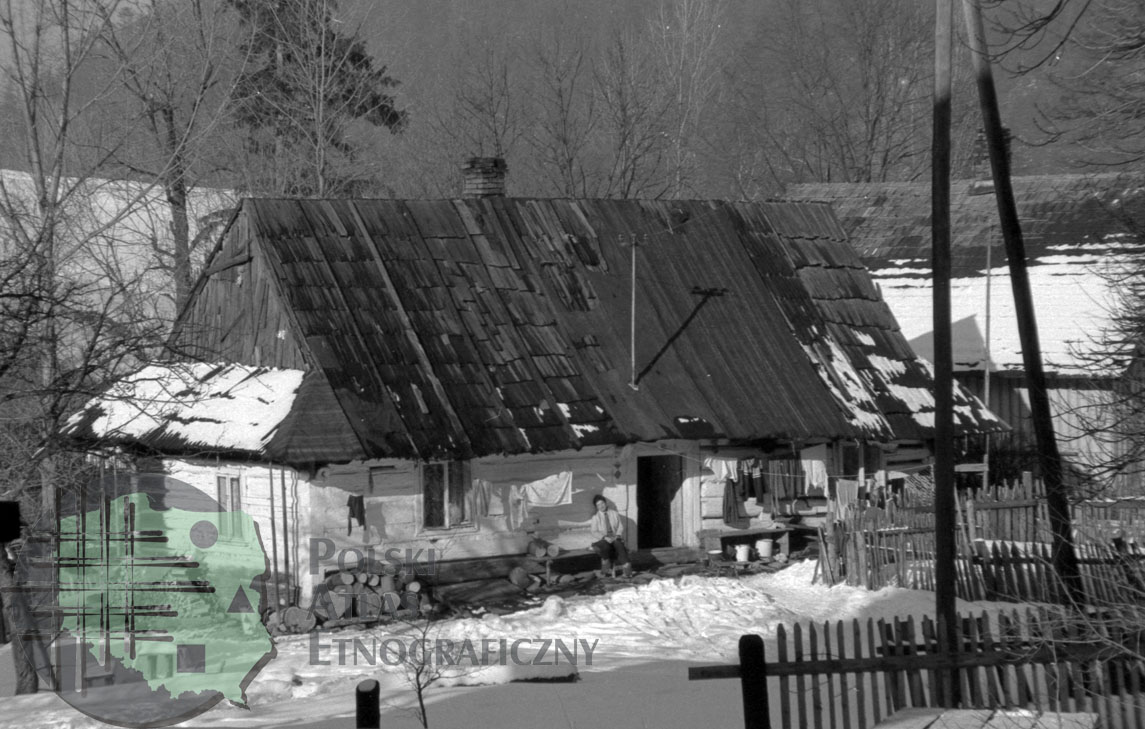 Drewniany budynek mieszkalny z dachem przyczółkowym / Kolekcja fotografii Zygmunta Kłodnickiego - Korbielów (woj. śląskie)