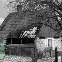 fotografia przedstawia budynek mieszkalny o węgłowej konstrukcji ścian, otoczony płotem sztachetowym
