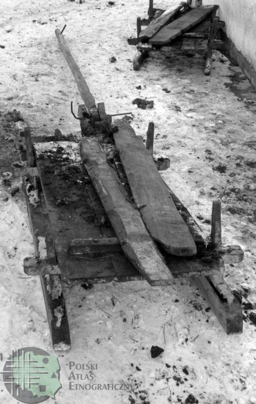 dwie fotografie przedstawiają sanie (widok od spodu)