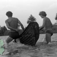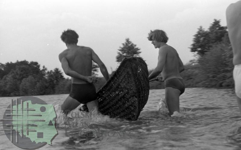 Dwaj chłopcy zanurzający kłonię w wodzie / Kolekcja fotografii Zygmunta Kłodnickiego - Stobnica (woj. łódzkie)