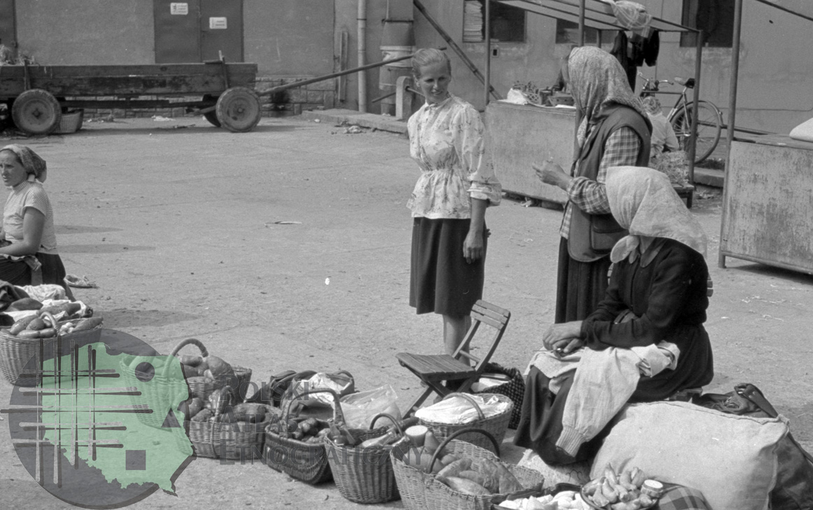 Kobiety sprzedające oscypki na targu / Kolekcja fotografii Zygmunta Kłodnickiego - Nowy Targ (woj. małopolskie)