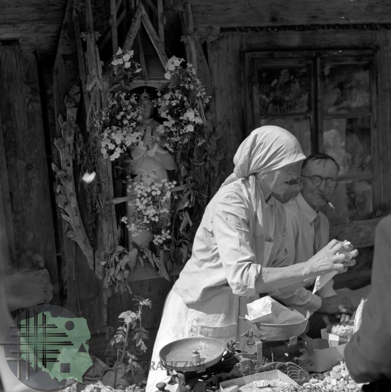 Góralka sprzedająca cukierki w czasie odpustu św. Jacka / Kolekcja fotografii Zygmunta Kłodnickiego - Chochołów (woj. małopolskie)