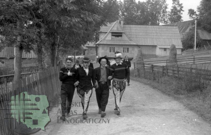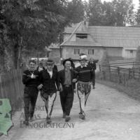 Mężczyźni w strojach podhalańskich idący przez wieś / Kolekcja fotografii Zygmunta Kłodnickiego - Dzianisz (woj. małopolskie)