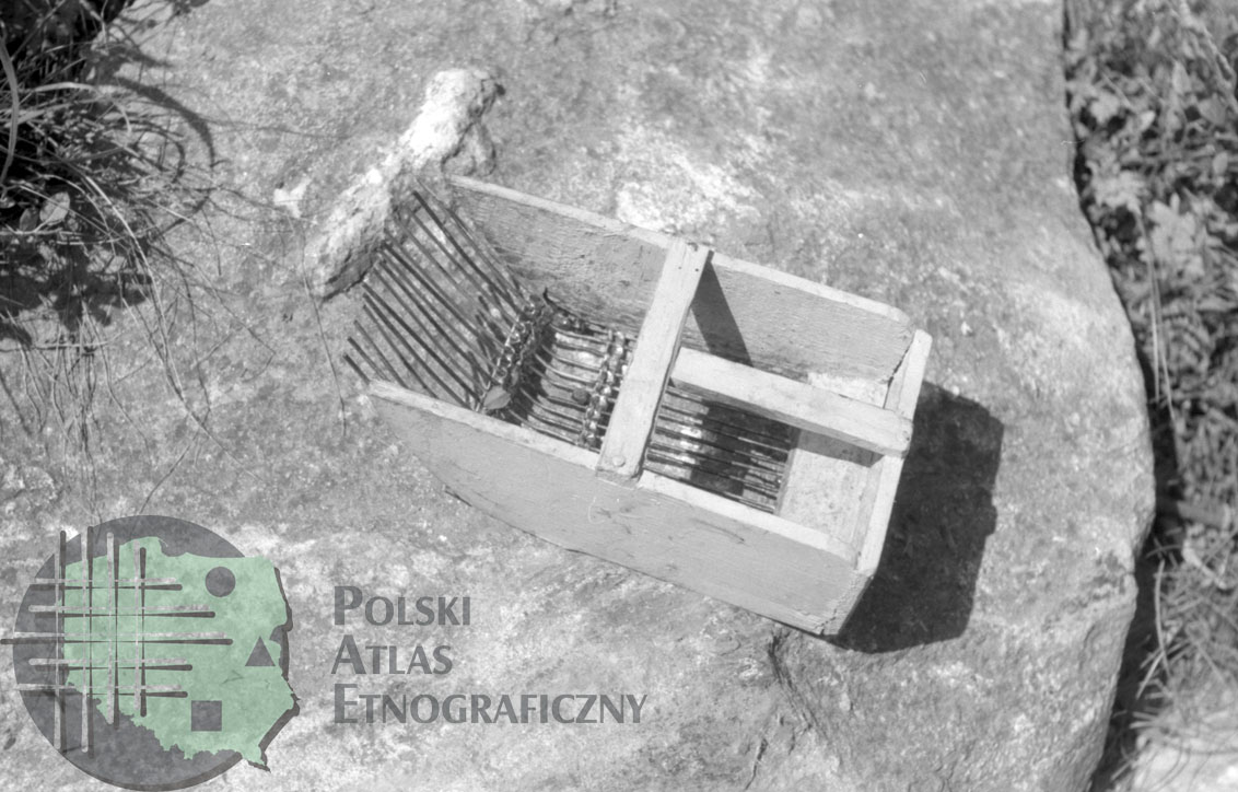 fotografia przedstawia czerpak zgrzebłowaty do zbierania borówek. Uwaga:- lokalizacja na mapie jest przybliżona