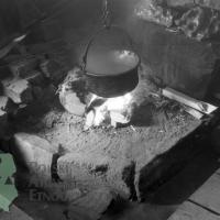 fotografia przedstawia palenisko w szałasie. Uwaga:- lokalizacja na mapie jest przybliżona