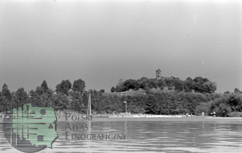 fotografia przedstawia Inowłódz od strony rzeki Pilicy, wieżę romańskiego kościoła św. Idziego z XII w.
